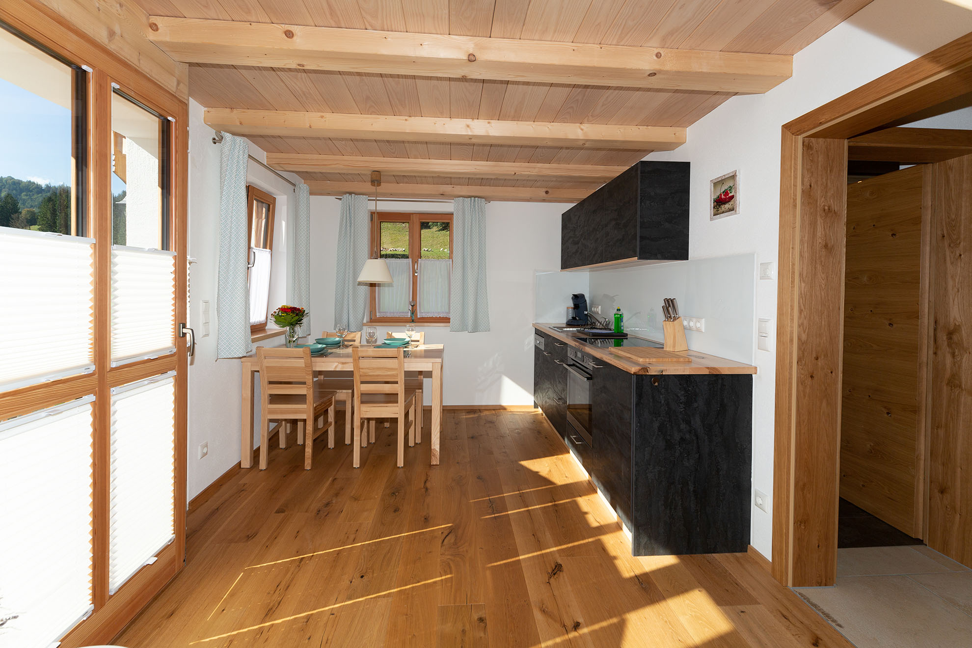 Wir waren in der FeWo Brünnstein im Obergeschoss. Du kommst rein und fühlst dich wohl. Es riecht frisch und nach Holz. Die Fewo ist komplett ausgestattet: u.a. Kühlschrank mit Gefrierfach sogar eine kleine Spülmaschine ist da. Der Balkon bietet einen wunderschönen Ausblick in die Berge und zu den Kühen. Geschlafen wird unterm Dach. Vom Kurzenwirt sind direkt Wanderungen möglich: Hechtsee und Gießenbachklamm sind in ca. 10-15 min. per Fuß zu erreichen.